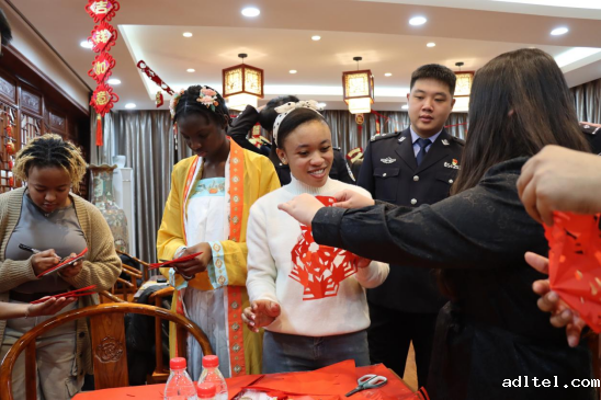 也有的留学生们开始学习剪窗花和编中国结。这两项传统手工艺活动让他们充分领略了中国民间艺术的魅力。在民警和老师们的细心指导下,留学生们用灵巧的双手剪出了一幅幅精美的窗花,编织出一个个寓意吉祥的中国结。他们的作品不仅展示了他们的学习成果,也成为了此次活动的美好记忆。