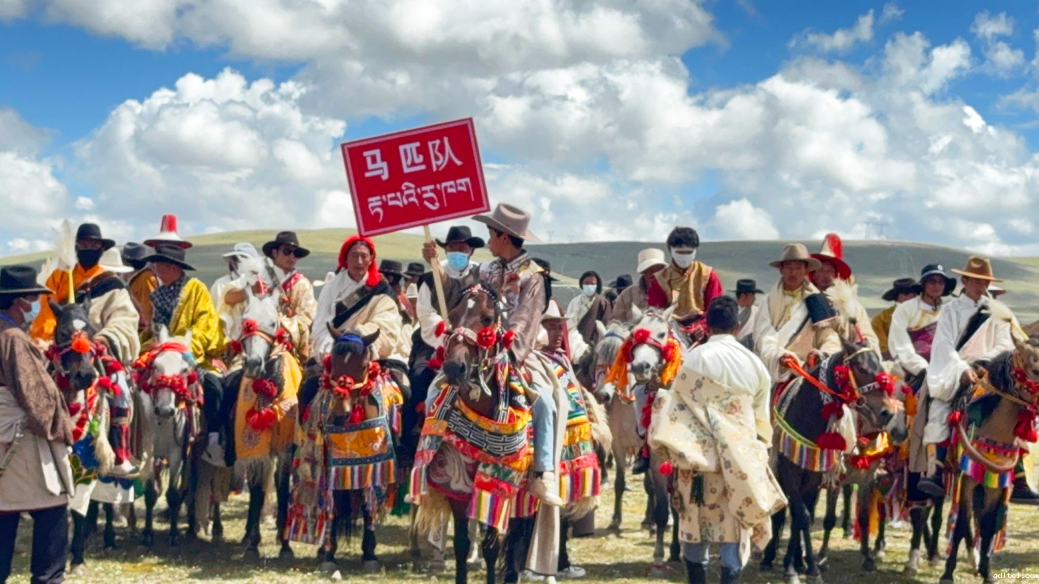 7月21日,那曲赛马节如期举行,成员们全程观看盛况。赛马节不仅是体育竞技,更是藏族精神的生动写照,是彰显藏族人民积极向上、坚韧不拔、勇往直前的精神图腾。现场热闹非凡,观众的欢呼声与马蹄声交织成激昂的乐章。开幕式上,各方队手中高高举起五星红旗,精神抖擞地入场,在广袤无垠的草原衬托下,鲜艳的红色格外夺目。这质朴而庄重的方式是高原人民对祖国深沉热爱的生动表达,诉说着对祖国的拳拳赤子之心。发令枪响,骏马飞驰如离弦之箭,骑手们伏于马背、策马奔腾,展现出马上射箭、打靶、倒立等高超技艺,人马合一的默契令人惊叹。每一个转弯、每一次冲刺,都充满了智慧和勇气。在采访环节,成员们与当地领导顿珠次仁老师进行了深入交流,“我们这个乡的赛马节,规模确实远比不上市里的,但别小看了它,这可是我们当地人的希望和精神寄托啊!大家都打心底里重视,每年都会用心筹备。”老师的话语里满是对这方土地和这项传统的热爱。同时,成员们也与赛马骑手的家长进行了交流,每一名骑手背后,是默默支持他们的家人,还有无数热爱这项运动的高原人民。从日常训练的陪伴,到比赛时的加油助威,他们是骑手们最坚实的后盾。采访过程中,大家了解到当前年轻人对这项传统活动的关注度降低,给传承带来了挑战。像顿珠次仁老师说的,我们必须积极行动起来,让更多的人,尤其是年轻人,了解赛马节的魅力,让传统文化焕发出新的生机与活力,代代相传,永不落幕。